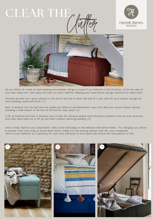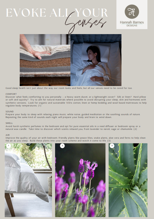 Based on creating the ideal environment for wellbeing and sleep, Hannah’s interior design experience is shared below and includes how to evoke all our senses for the best night’s sleep.
